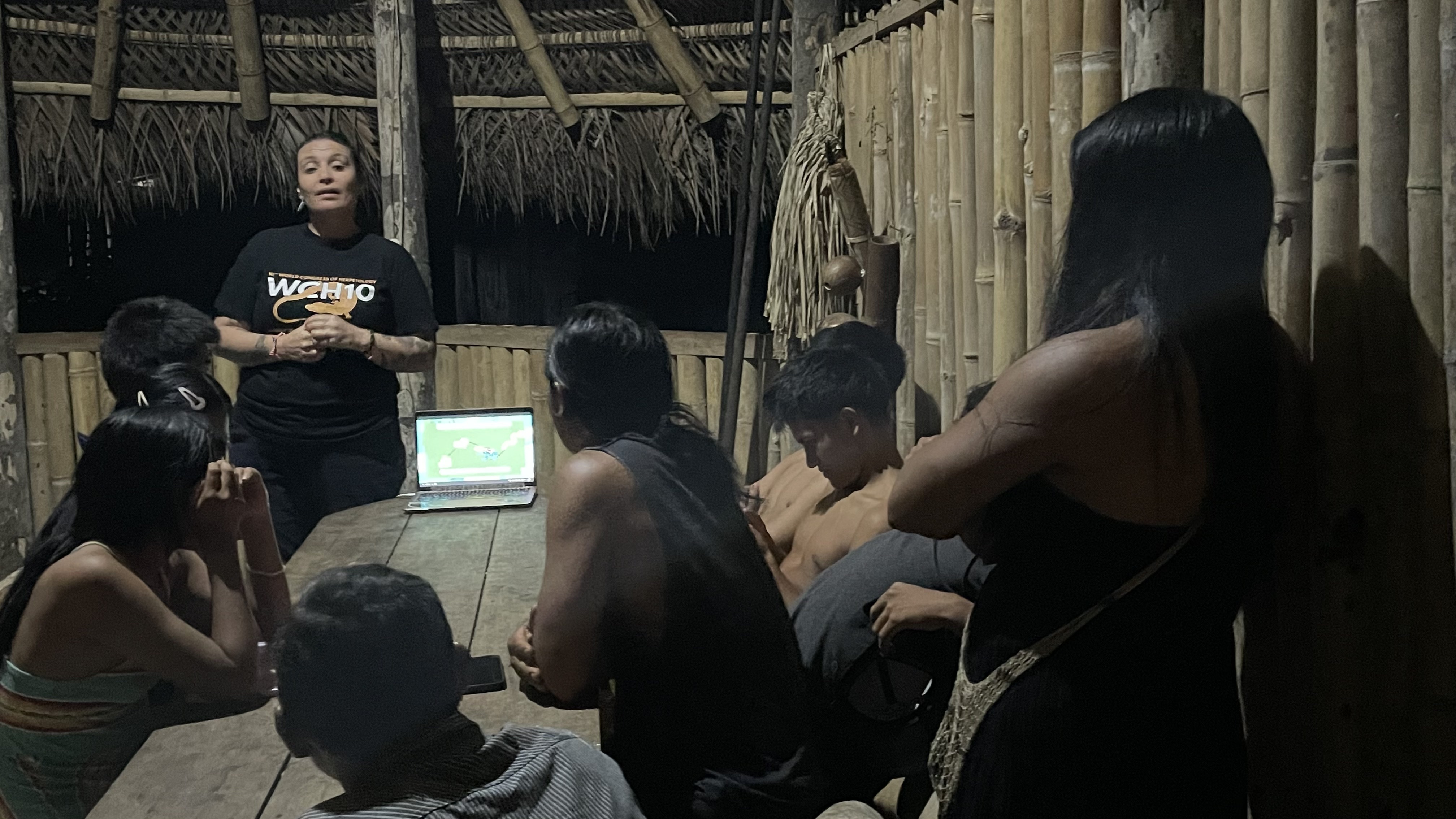 Während ihres Aufenthalts konnte sie auch sehen, wie eng die Gemeinschaft mit der Wissenschaft zusammenarbeitet. Zwei Biologinnen, die sich auf Frösche spezialisiert haben, besuchten die Gemeinschaft, um verschiedene giftige Arten zu dokumentieren. Gleichzeitig erklärten sie ihr Wissen den Kindern und Erwachsenen. Solche Besuche finden regelmäßig statt, sowohl von ecuadorianischen als auch internationalen Wissenschaftlerinnen und Wissenschaftlern. Sie helfen, die Zusammenarbeit zu stärken und die Naturschutzarbeit in Guayusa Runa zu unterstützen.